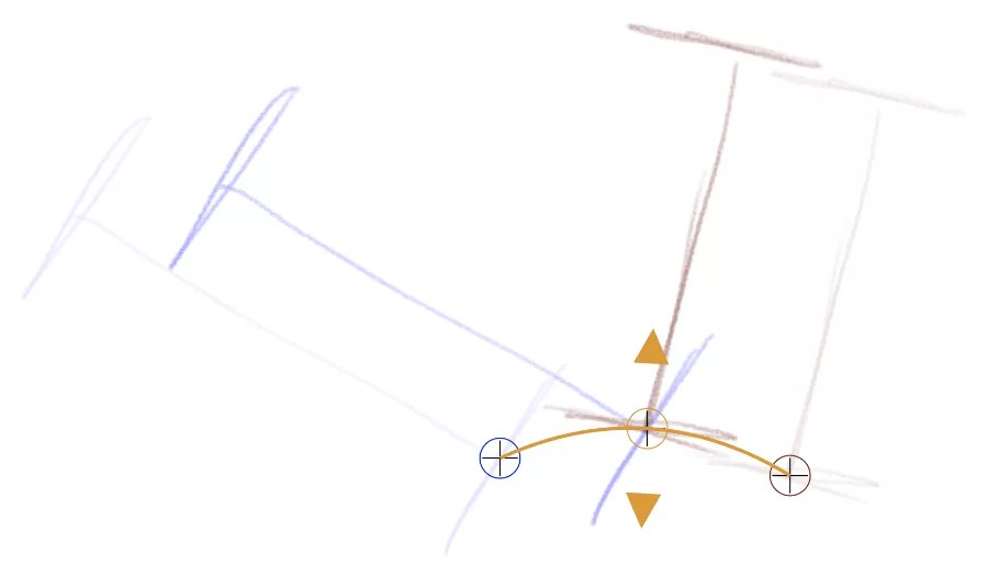 Déplacez une des flèches pour augmenter la courbe de l'arc d'un côté ou de l'autre.