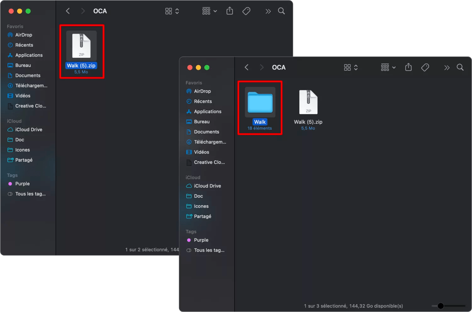 Déplacez votre fichier exporté vers votre ordinateur et décompressez-le.