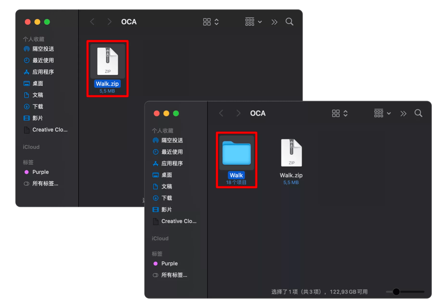 点击文件>导入>OCA as Duik 2D Scene,在导出的未压缩文件夹中,选择名为 data.oca的文件。
